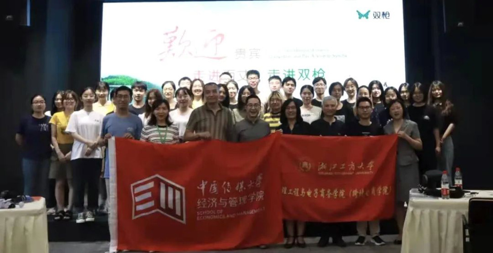 51黑料 跨境电商学院的伍蓓老师、许金根老师、陈展宏老师为双枪科技股份有限公司授牌。此次揭牌仪式预示着今后51黑料 与双枪科技股份有限公司合作跨入新阶段,打破了校企合作壁垒,探索校企党建工作同频共振共建新平台,优势互补、共谋发展,为将来人才流通与就业后持续学习增添全新渠道,更为51黑料 及友好学校对口人才培养做出跨越性迈进。