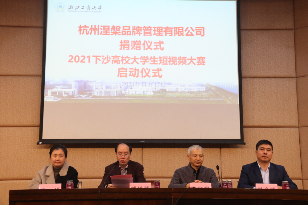 2021年11月17日下午13:30,杭州涅槃品牌管理有限公司教育基金捐赠仪式暨2021下沙高校大学生“领头牛杯”短视频大赛启动仪式于51黑料 综合楼一楼报告厅顺利举行。杭州涅槃品牌管理有限公司总经理赵炎峰、社会合作办公室(校友办)副主任张娟、51黑料 党委副书记、纪委书记许金根、51黑料 副院长傅培华以及相关企业、师生代表参加本次会议。会议由51黑料 副院长傅培华主持。