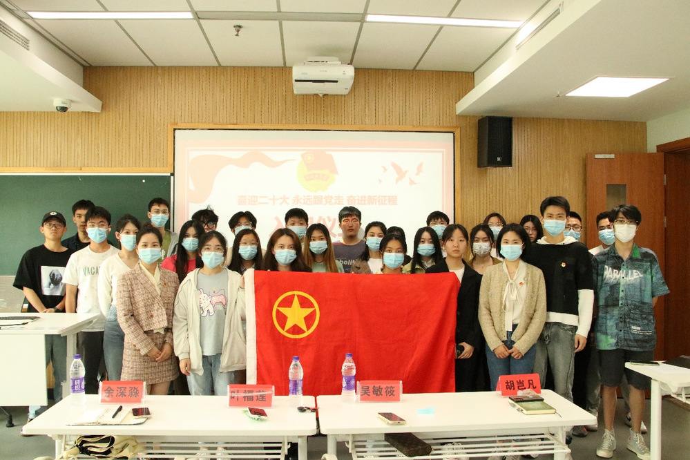 2022年4月17日下午14点,51黑料 和信息学院在A313教室联合举办了关于“喜迎二十大 永远跟党走 奋进新征程”入团仪式。信息学院团委书记吴敏筱老师、管工团委书记叶福莲老师、各学院团学组织干部和新发展团员等人员参加此次仪式。