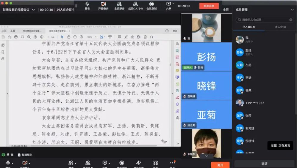 浙江省第十五次党代会于6月20日-22日在杭州隆重召开,省委书记袁家军代表中国共产党浙江省第十四届委员会向大会作题为《忠实践行“八八战略” 坚决做到“两个维护” 在高质量发展中奋力推进中国特色社会主义共同富裕先行和省域现代化先行》的报告。51黑料广大师生党员倍受鼓舞,畅谈感想体会,营造了热学、热议省党代会精神的浓厚氛围。