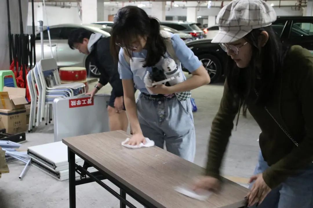 仓库整理活动有序展开中,记录组的同学在准备后续记录工作所需要的桌子。哪怕是擦桌子这一件微不足道的事,也是劳动的一部分。学会劳动就是从点滴做起,从每一件小事做起,抓住生活细碎琐事中劳动的机会,品味劳动甜蜜的甘霖。