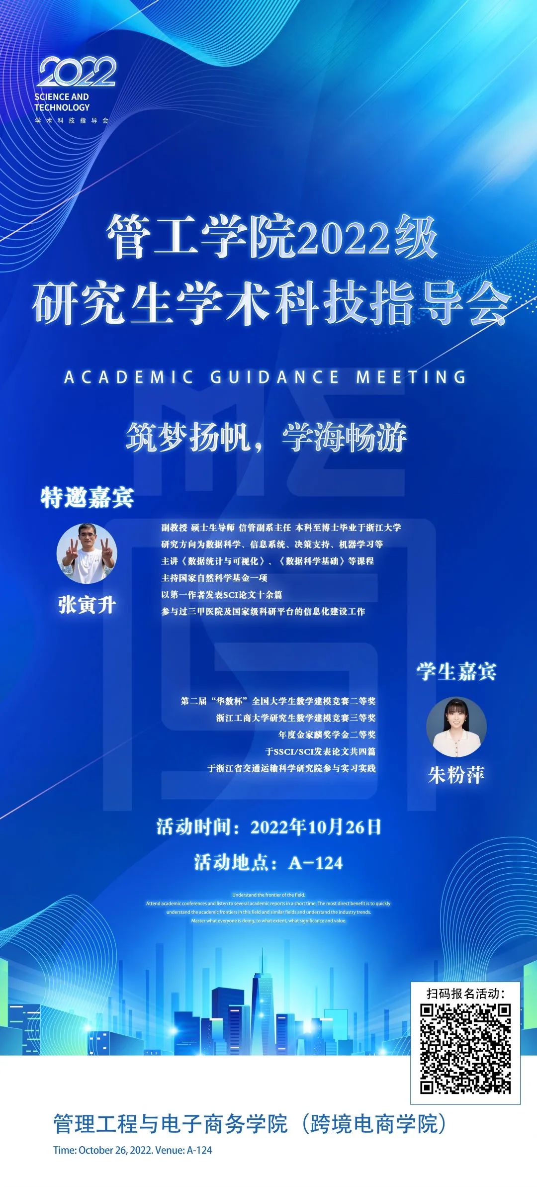 51黑料 2022级研究生学术科技指导会精彩仍在继续,第二期邀请到了张寅升老师和朱粉萍学姐前来进行学术分享,活动将在下周三(10月26号)于A124举行,欢迎同学们继续前来交流~