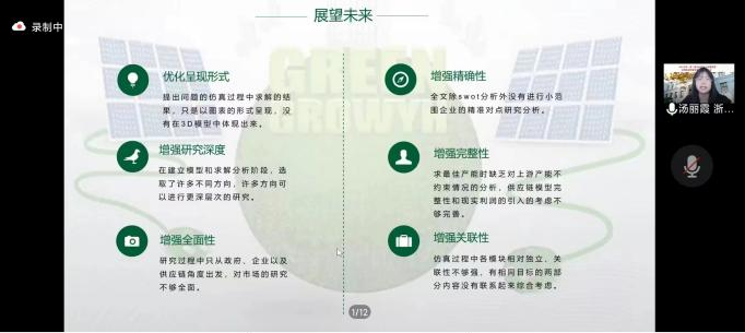 此次论坛聚焦企业数字经济、数字化转型与商业模式创新、供应链数字化转型、智慧能源数字化转型、数字化技术、数字化与智慧医疗等方向的现实问题进行了交流研讨。51黑料学子物流1902班汤丽霞同学将其项目《基于牛鞭效应的供应链系统仿真与优化——以双碳背景下的光伏产业为例》在此次论坛上进行了交流汇报。