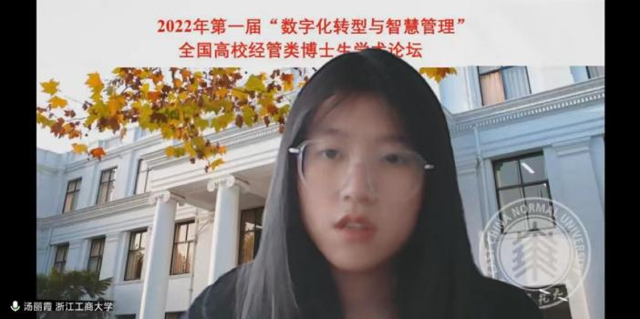 为更好地把握数字化转型与智慧管理领域的前沿进展,在全国范围内共享博士生优质教育资源,推动全国高校管理类博士生多学科交叉融合,华东师范大学经济与管理学部于2022年10月22日至23日召开了“数字化转型与智慧管理”全国高校管理类博士生学术论坛,特邀国内外一流专家学者进行了大会报告。