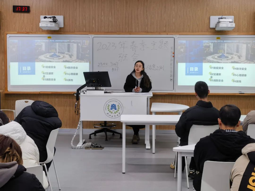 辅导员、班主任结合近期发生的校园安全案例展开讲话,又结合所见所闻对校外曾发生的真实安全事故作出分析,借此契机引导同学们树立安全意识,注重防疫防诈、交通消防以及心理健康问题,同学们顺应主题进行了新学期的第一次心理普测。老师们结合各自经历和专业特点,就如何做好新学期规划、树立学习目标、培养兴趣爱好、提升自身综合能力等方面引导同学们争做“优等生”、“先行者”、“实干家”,努力成长为奋发有为的新时代好青年。为了加强毕业生的思想教育,明确接下来的就业路径,寻找就业方向,指导学生做好毕业前的准备工作,辅导员、班主任也对就业形势做出了分析,给予一些指导意见。