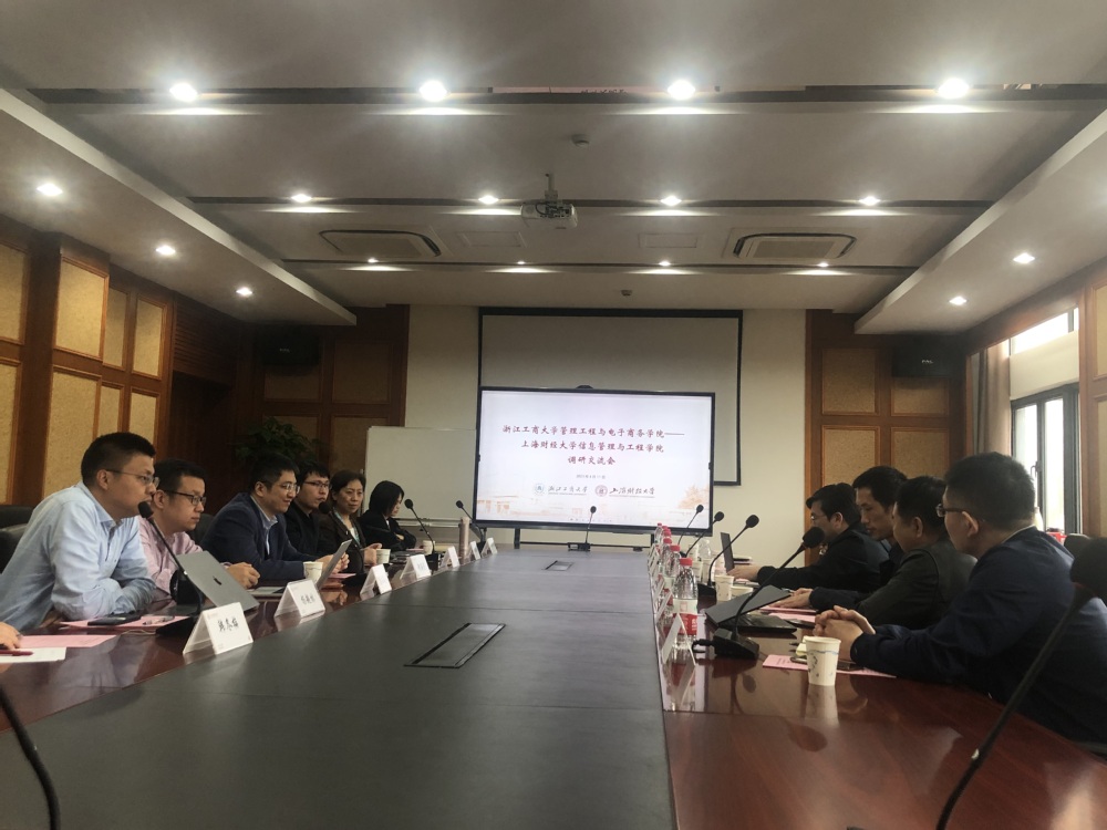 11日下午,在上海财经大学信息管理与工程学院,黄海量院长介绍了信工学院在人才引进和科研团队建设上的亮点与成绩,李艳红老师介绍了信息管理与电子商务系的人才培养计划。双方就跨学科培养和科研团队管理等方面进行了探讨。座谈会后,一行7人还参观了信工学院的图书阅读室和文化墙,收获颇丰。