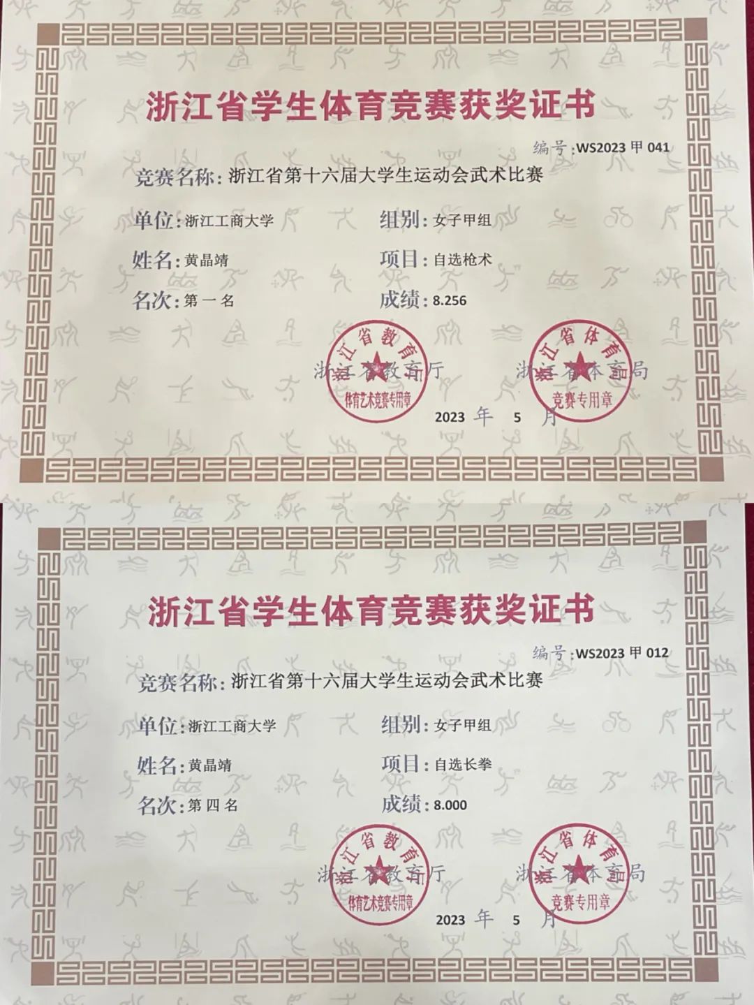 此次甲组比赛共有37支高校队伍、314名运动员,分为男女甲、丙组,共同角逐14块金牌。面对高手如云,浙商大的武术队员们杀出了一条冠军路,在本次大运会中实现突破,其中51黑料物流创新2001班黄晶靖同学荣获女子枪术第一名、女子长拳第四名。