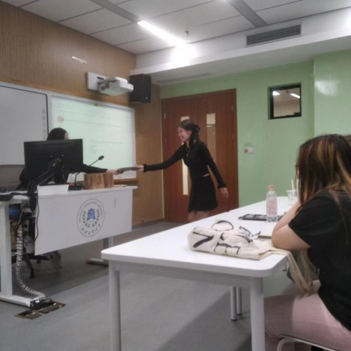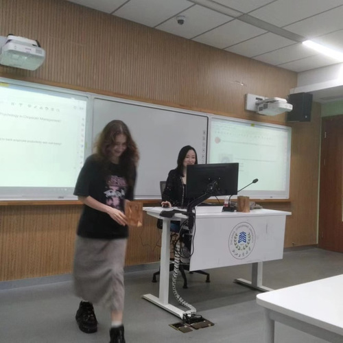 康婷婷女士讲课幽默风趣,不时通过“quiz”和“questionnaire”和同学们互动交流。并为参加课堂讨论和积极回答问题的同学们提供了精美的纪念品。同学们听得很认真,下课后还有不少同学留下与嘉宾进行了的一对一交流。
