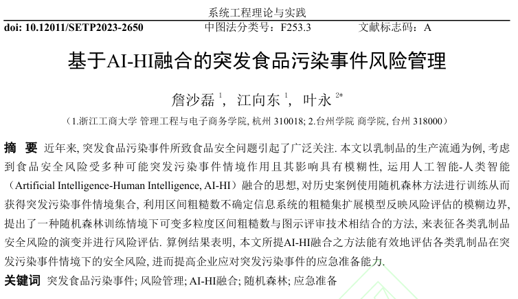 (1)在《系统工程理论与实践》(A++类期刊)发表论文1篇(2/3,导师一作)