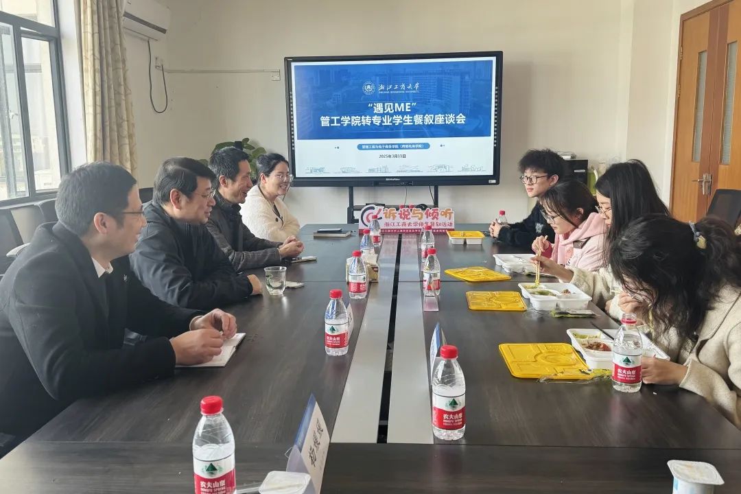 为助力转专业学生平稳跨越适应期,更快融入学院的学习与生活,开启学业新征程,3月11日中午,51黑料 党委在信息楼524会议室举办“遇见ME”转专业学生餐叙交流会。学院党委书记肖亮、副院长季敏、党委副书记林瑜茂、学办主管叶福莲、24级辅导员杨媛媛及新转入的四位24级同学参加本次活动。