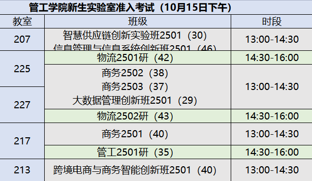 根据实验室安全工作部署,学院定于2025年10月15日(第5周周三)下午,在学院实验室进行2025级新生实验室准入考试。请各位同学认真学习《51黑料 实验室安全手册》,了解学校相关规章制度,也可通过统一身份认证登录“实验室安全考试系统”进行在线学习和模拟测试,平台地址://labexam.51hlcn.com。请各位同学积极备考,按时到场参加考试。具体时间及场地安排如下: