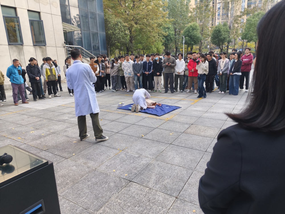 本次演练内容包括实验室消防应急疏散演练、心肺复苏现场演示与演练以及灭火器的使用讲解与演练三个部分。演练现场将视情况设置模拟烟雾和火警铃声,以模拟真实火场环境,师生们按照预先制定的疏散路线迅速、有序地撤离,并在安全地带集合,整个过程紧张而有序。心肺复苏现场演示与演练环节让师生们深刻了解急救知识。专业人士通过模拟人进行了心肺复苏操作演示,并指导师生们亲自动手实践,确保在紧急情况下能够迅速有效地进行急救。